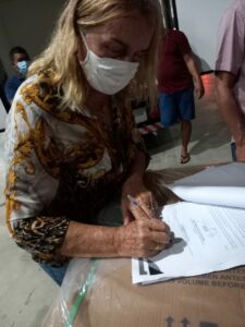 As fotos abaixo, mostram o Prefeito Egberto Madruga, a Secretária de Ação Social Djeniere Macedo e a Secretária de Agricultura Drª Emilia Brandão assinando os documentos de recebimento pelos equipamentos e pelo caminhão.
